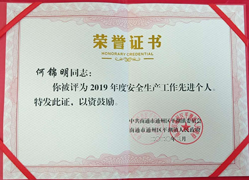 安全生產(chǎn)先進(jìn)個人榮譽(yù)證書